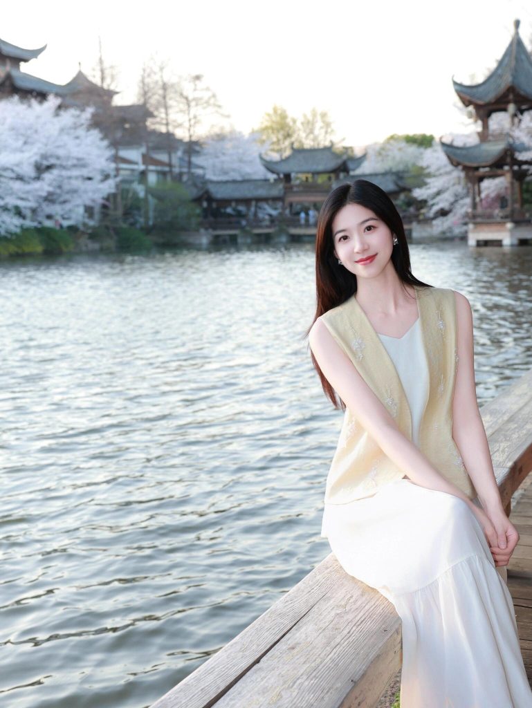 温酱大人墨大校门口打个卡 穿的学院套装 看起来好像很爱学习的样子