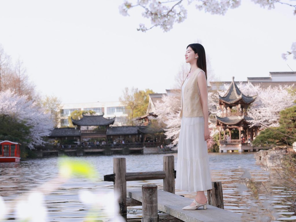 温酱大人墨大校门口打个卡 穿的学院套装 看起来好像很爱学习的样子