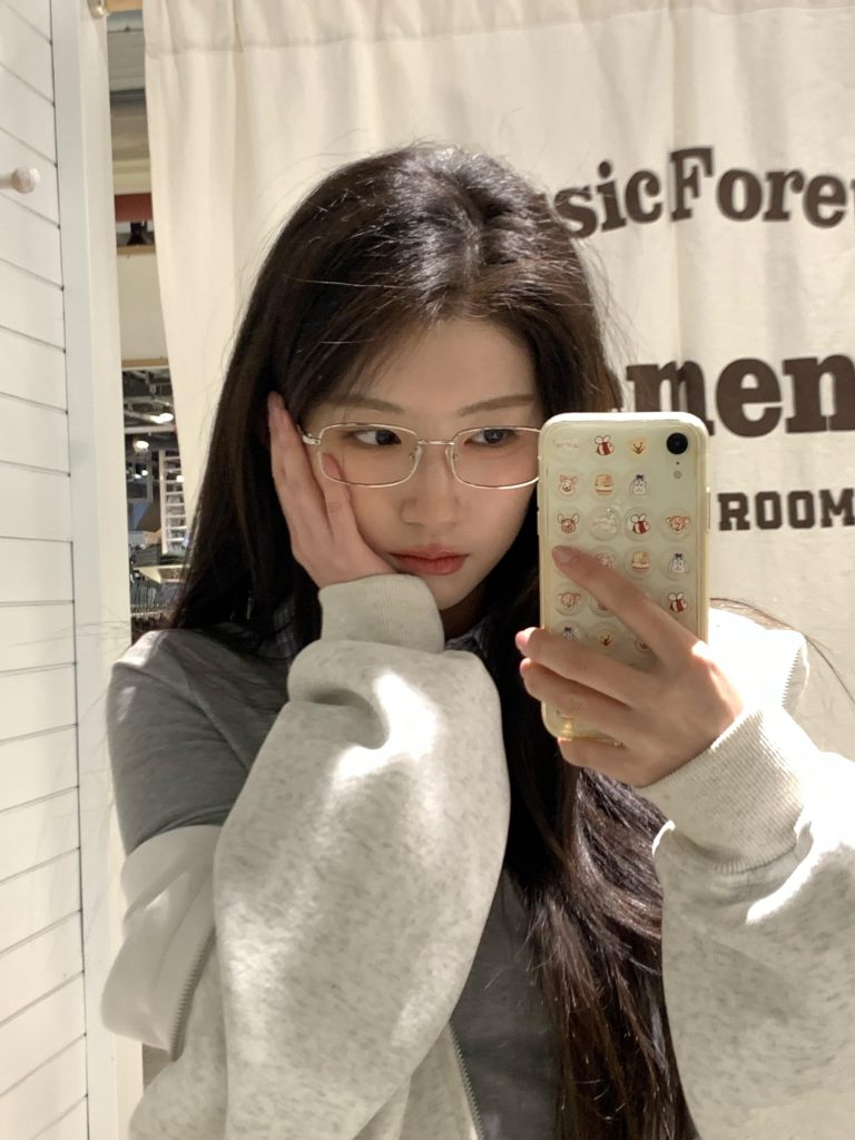 眼镜妹妹初春的氛围感是半框眼镜给的